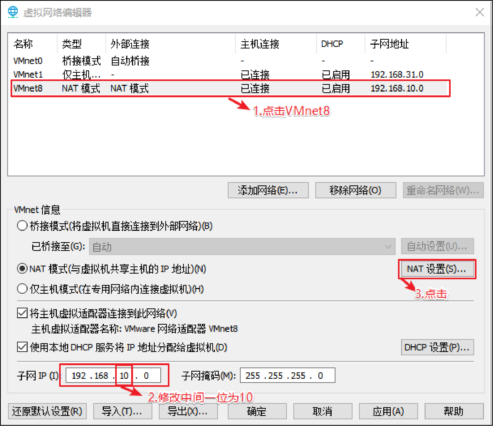 Windows的网络配置,目的,将windows的VMnet8网关与虚拟机网关相同