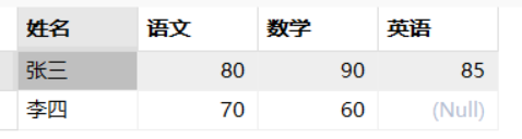 INSERT INTO score VALUES ('张三', '英语', 85);