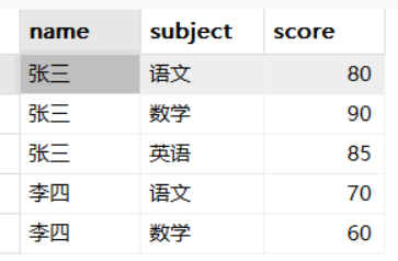 INSERT INTO score VALUES ('李四', '语文', 70);